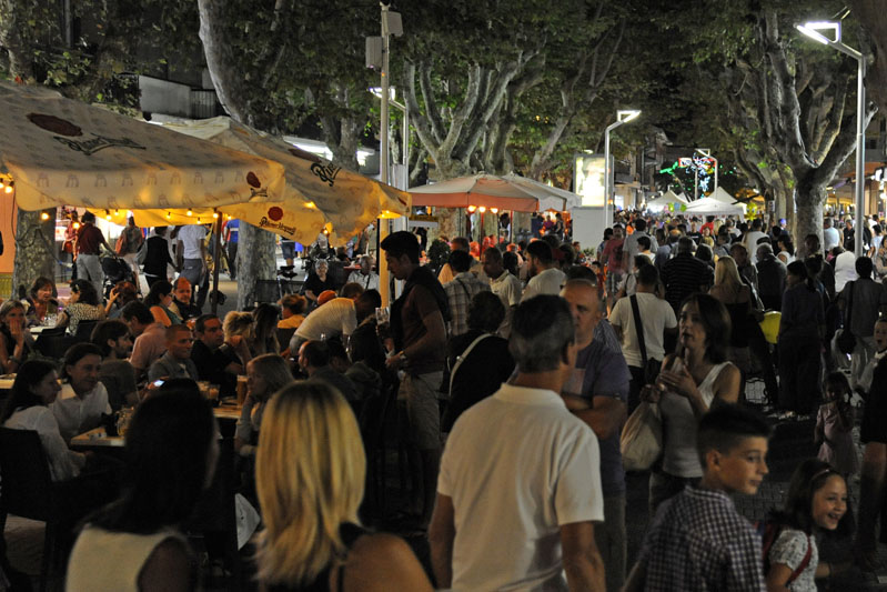 Restaurants, Weinprobe, typische Produkte, Kunsthandwerk, Musik und Shows in der Fußgängerzone im Stadtzentrum.