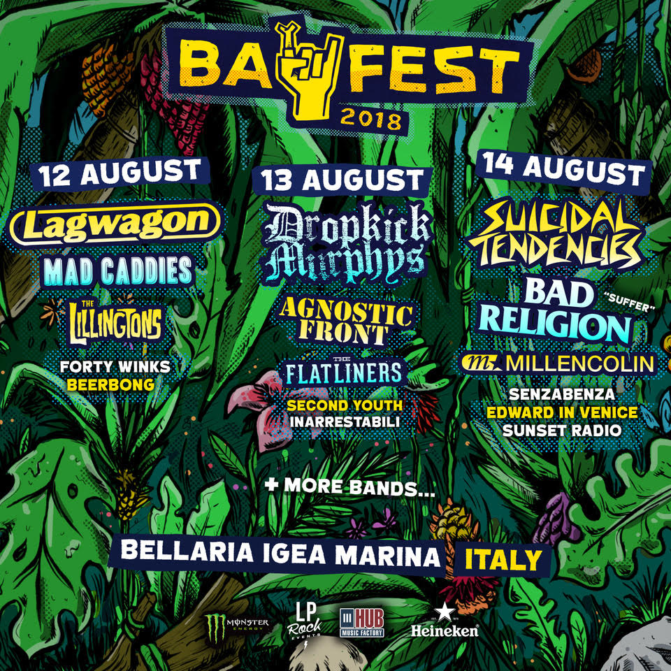 Dropkick Murphys + Suicidal Tendencies + Bad Religion + Lagwagon + Millencolin + Agnostic Front + Mad Caddies + The Flatliners + The Lilingtons + Forty Winks + Senzabenza + Beerbong + Edward In Venice + Second Youth + Inarrestabili + Sunset Radio + more bands tba