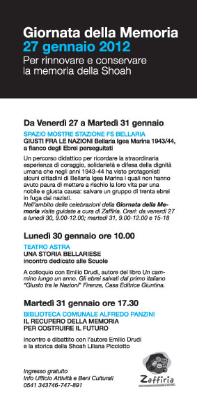 Per rinnovare e conservare la memoria della Shoa. Dal 27 al 31 gennaio 2012.