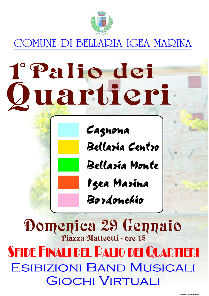 Le sfide finali si svolgeranno tra i Quartieri Cagnona, Bellaria Centro, Bellaria Monte, Igea Marina, Bordonchio.
