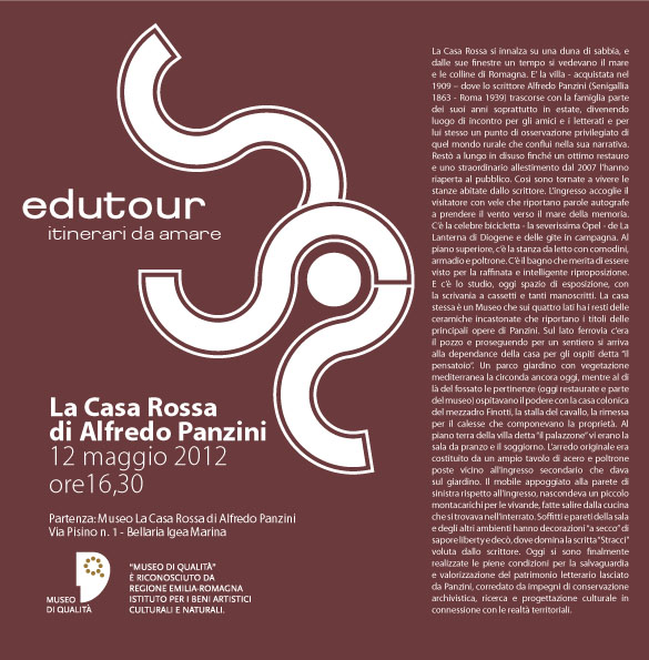 La Casa Rossa di Alfredo Panzini, dimora dello scrittore e della famiglia che oggi ha ottenuto dall’Istituto per i Beni Artistici, Culturali e Naturali della Regione Emilia Romagna il riconoscimento di Museo di Qualità per l’anno 2012, grazie ai propri requisiti e all’impegno dimostrato.