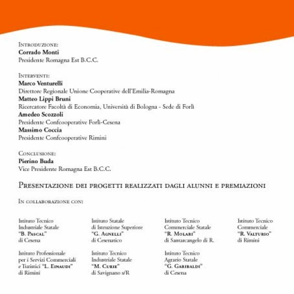L’iniziativa viene realizzata da Romagna Est BCC, Confcooperative di Rimini, Confcooperative di Forlì-Cesena, in collaborazione con Irecoop, Ricercazione e con il contributo di Fondosviluppo.