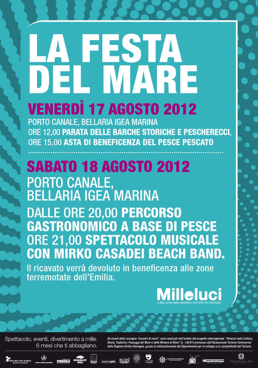 L’evento fa parte della rassegna “Incontri di Mare”, eventi realizzati nell'ambito del progetto interregionale "Itinerari nella Cultura, Storia, Tradizioni, Paesaggi del Mare e delle Miniere di Mare" (L. 135/01) promosso dall’Assessorato Turismo Commercio della Regione Emilia-Romagna, grazie al cofinanziamento del Dipartimento per lo Sviluppo e la Competitività del Turismo.