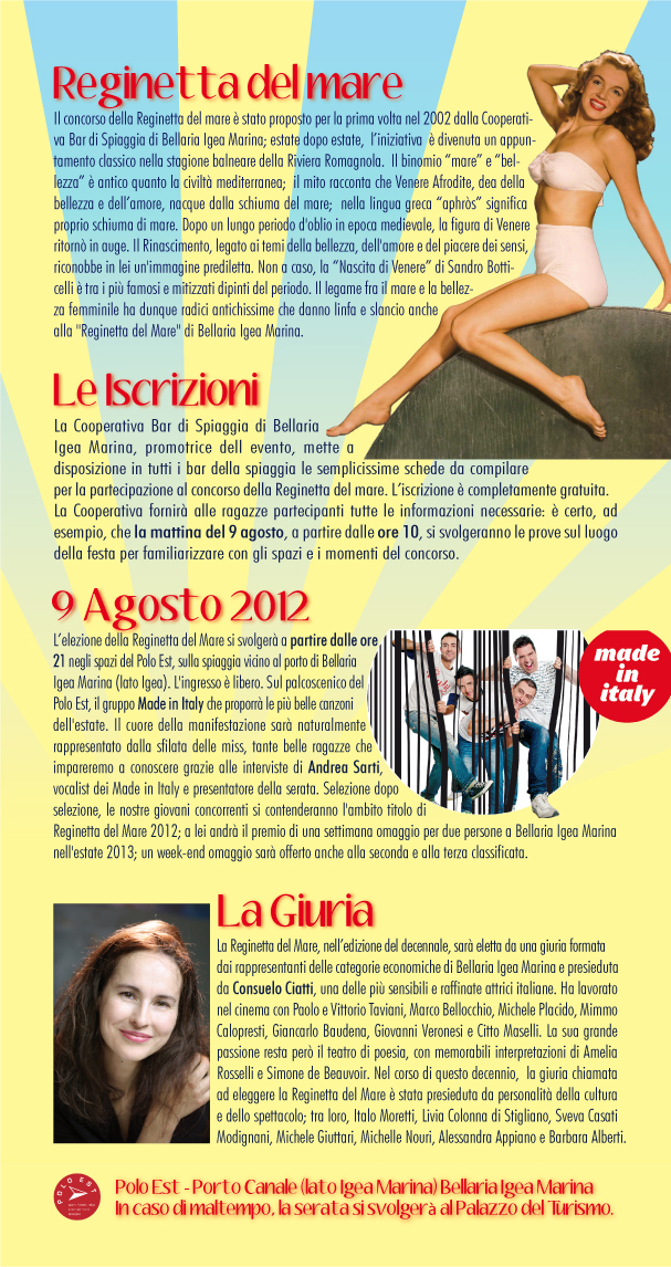 A cura di Cooperativa Bar di Spiaggia e Confesercenti Bellaria Igea Marina con il patrocinio del Comune di Bellaria Igea Marina.