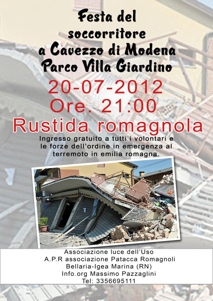 Bellaria Igea Marina con l'Associazione Luce dell'Uso e A.P.R. Associazione Patacca Romagnoli alla Festa del Soccorritore a Cavezzo di Modena per portare un pò di Romagna nei luoghi colpiti dal terremoto.