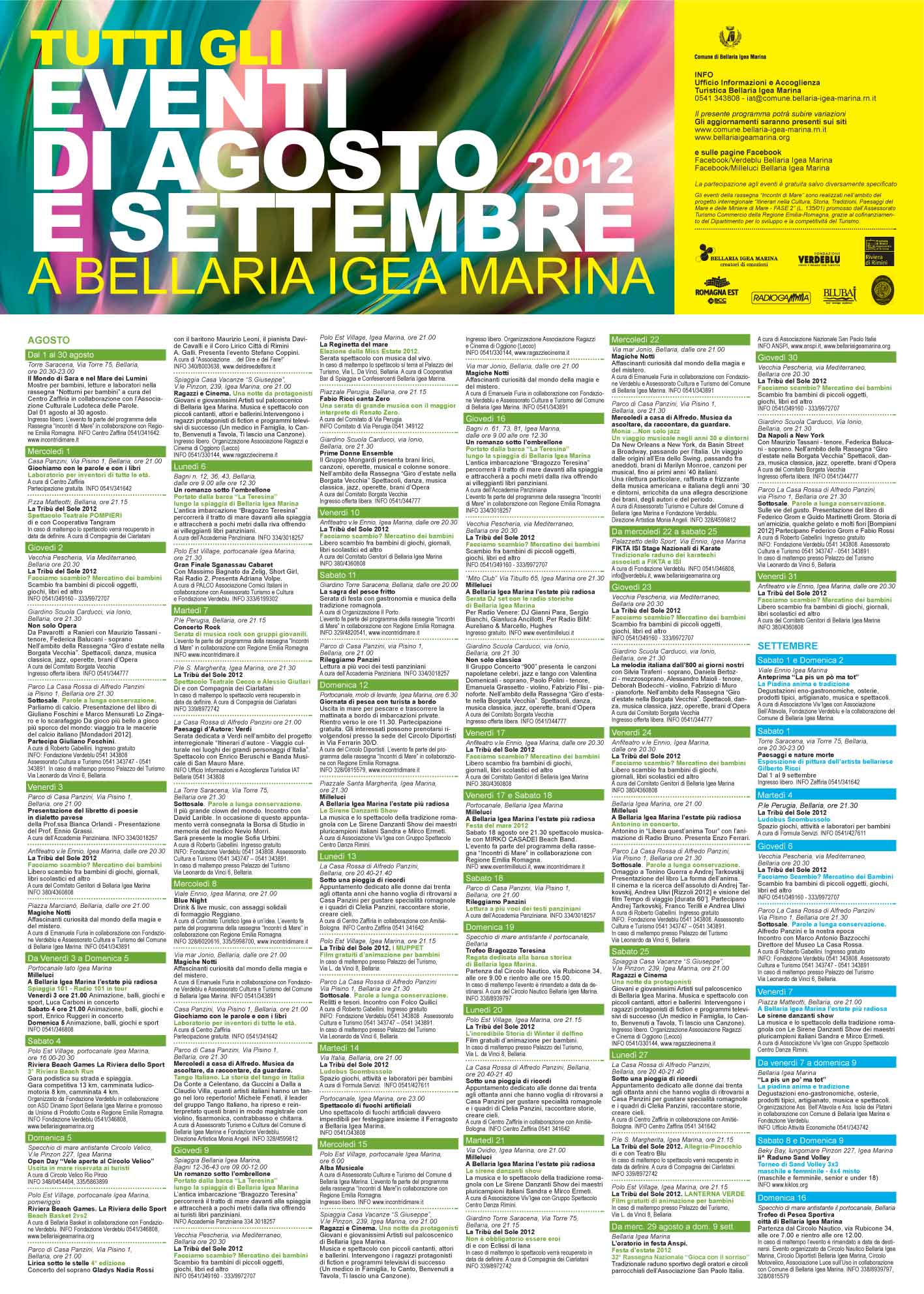 Calendario eventi estate 2012. Tutti gli eventi del mese di agosto.