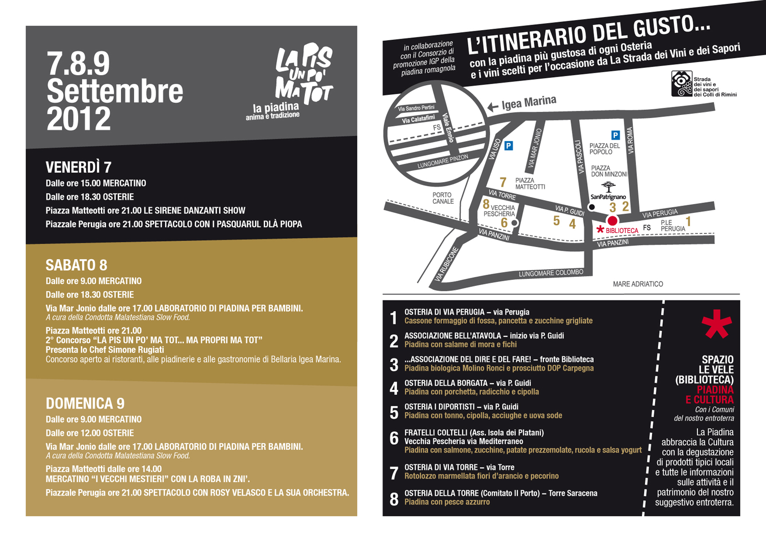 L’itinerario del gusto con la piadina più gustosa di ogni Osteria e i vini scelti per l'occasione da La Strada dei Vini e dei Sapori dei Colli di Rimini.