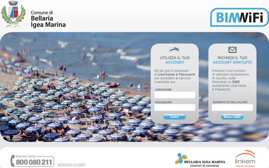 Il servizio è a cura di LINKEM spa, società che si è aggiudicata l’Avviso Pubblico di manifestazione di interesse indetto dal Comune di Bellaria Igea Marina per la realizzazione e gestione del servizio di connessione ad internet senza fili.