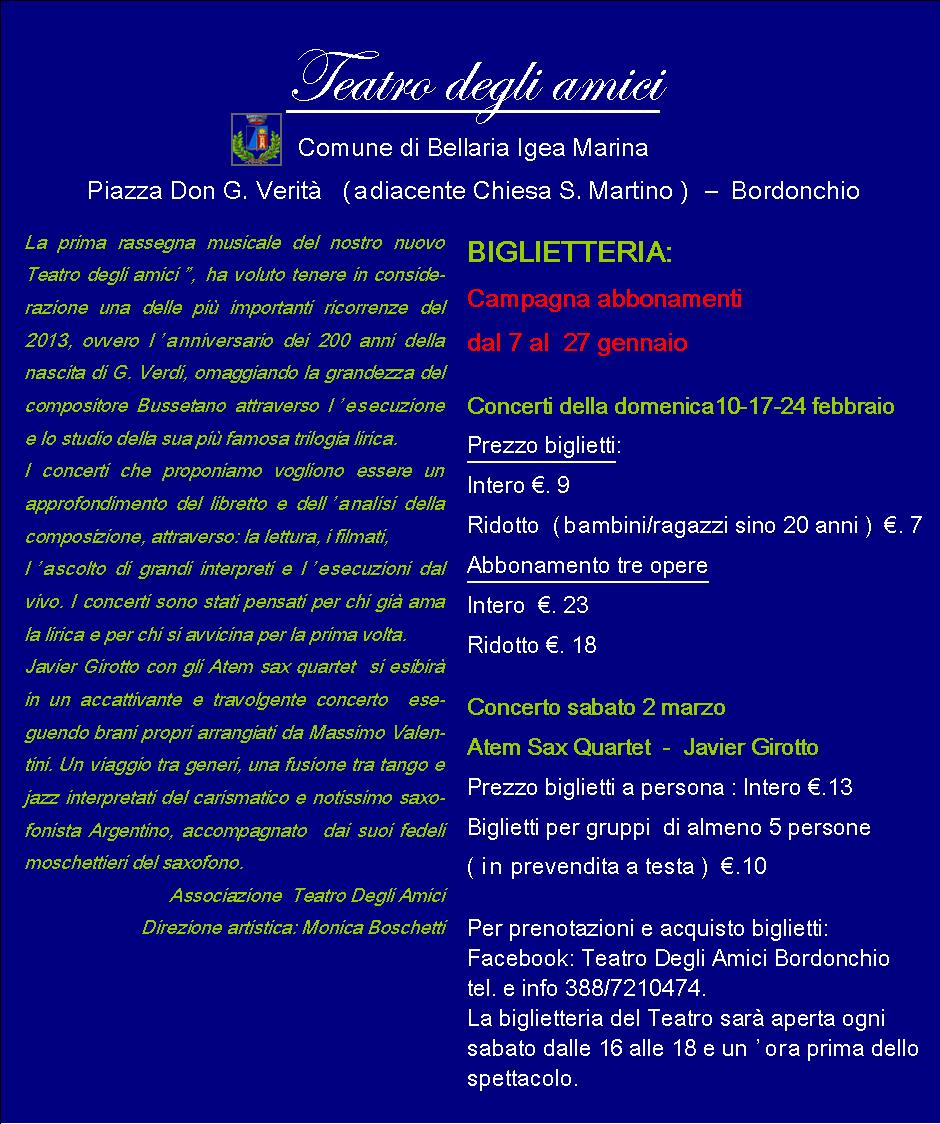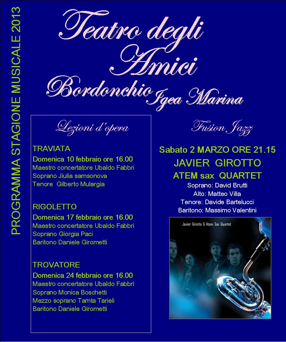 Teatro degli Amici di Bordonchio. Programma stagione musicale 2013.