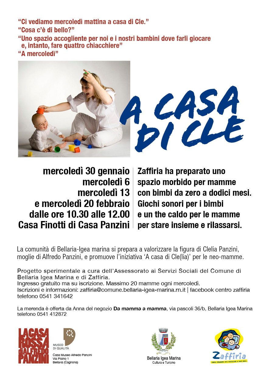 Gli incontri di “A casa di Cle(lia)” si svolgeranno tutti i mercoledì mattina (dalle ore 10.30 alle 12.00) presso Casa Finotti, una delle pertinenze di Casa Panzini in via Pisino: l’ingresso è gratuito e, per tutte le presenti, in programma anche una merenda offerta dal negozio “Da mamma a mamma”.