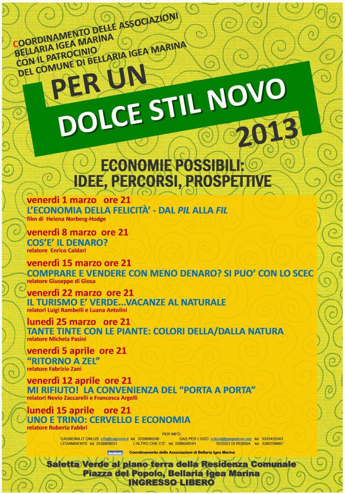 Serie di incontri legati all’economia sostenibile a cura di diverse Associazioni di Bellaria Igea Marina.