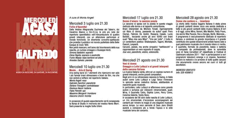 Tutte le serate saranno aperte da letture panziniane che allieteranno l’attesa del concerto con le parole del celebre letterato, grazie alla collaborazione con l’Accademia Panziniana.
