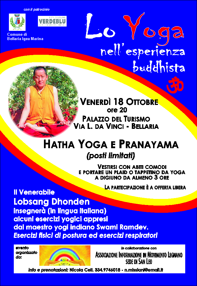 Il Venerabile Lobsang Dhonden insegnerà (in lingua italiana) alcuni esercizi yogici appresi dal maestro yogi indiano Swami Ramdev.