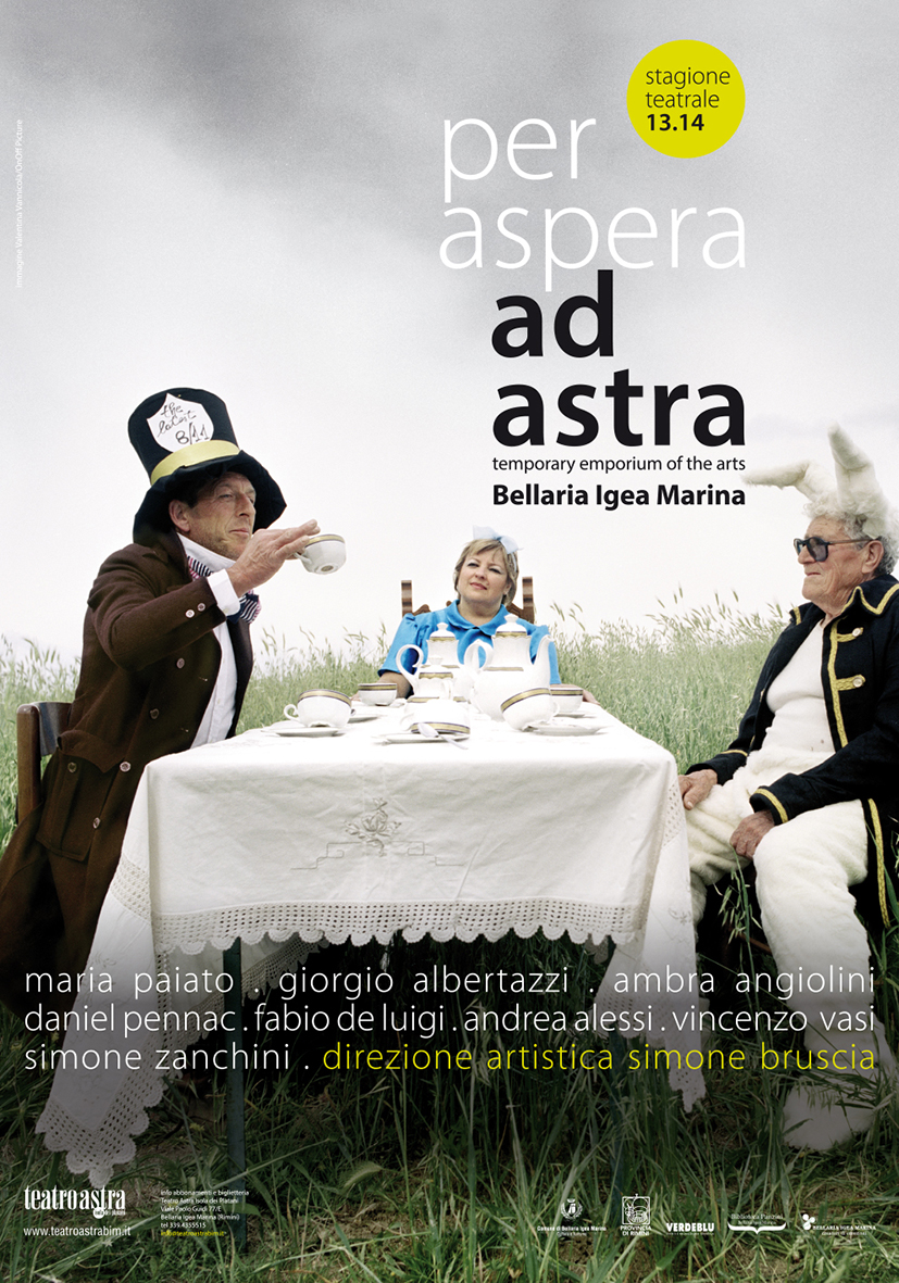 La stagione teatrale per aspera ad astra 13.14 - temporary emporium of the arts è diretta da Simone Bruscia ed è promossa e organizzata da Verdeblu srl, in collaborazione con il Comune di Bellaria Igea Marina, Biblioteca Comunale “A. Panzini”, Banca di Credito Cooperativo Romagna Est e con il patrocinio della Provincia di Rimini.