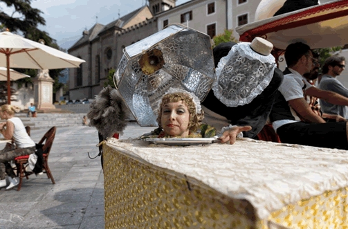 Un’animazione itinerante che lascia il pubblico senza fiato...Olga, una simpatica cameriera, talmente servizievole che è arrivata addirittura a servire la propria testa su un piatto d’argento!!! Attrazione di forte impatto visivo, che al primo sguardo può sembrare spaventosa, ma le basteranno pochi secondi per conquistare tutti con le sue cadute e le esilaranti impacciataggini. Il piatto del giorno è la comicità, accompagnata da divertenti gags, virtuosismi sul monociclo e tanti imprevisti affrontati da un vero e proprio “cartoon” in carne ed ossa!