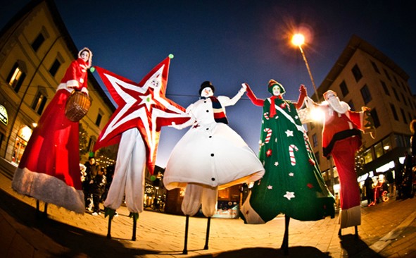 Babbo Natale e i suoi scatenati folletti si fanno largo per la strada a suon di musica, giochi e animazioni. Non manca nulla: l’albero e il pupazzo di neve si danno da fare per stare al loro passo.