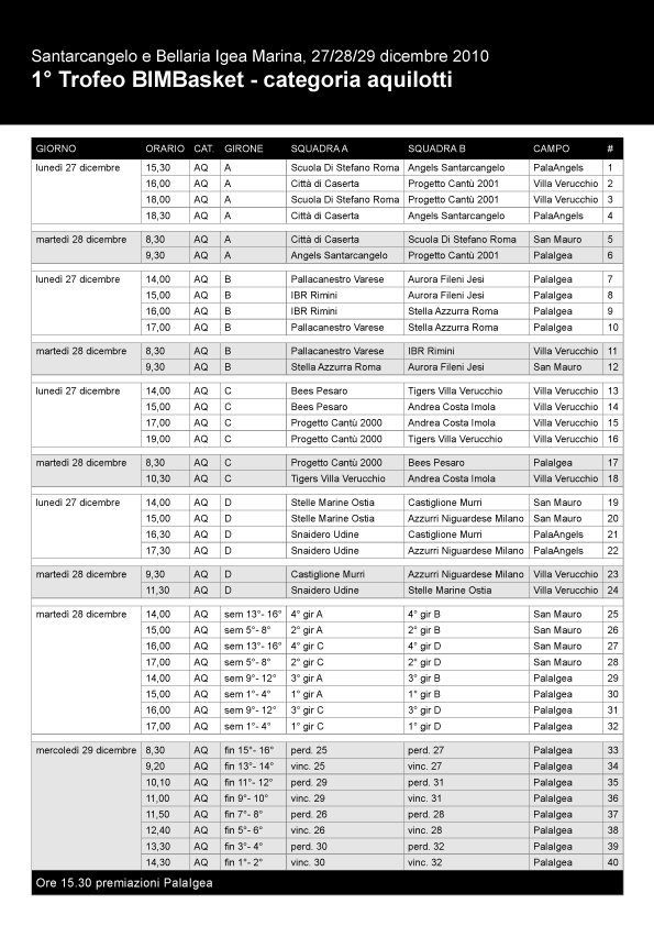 TORNEO NAZIONALE DI MINIBASKET 27-29 dicembre 2010
