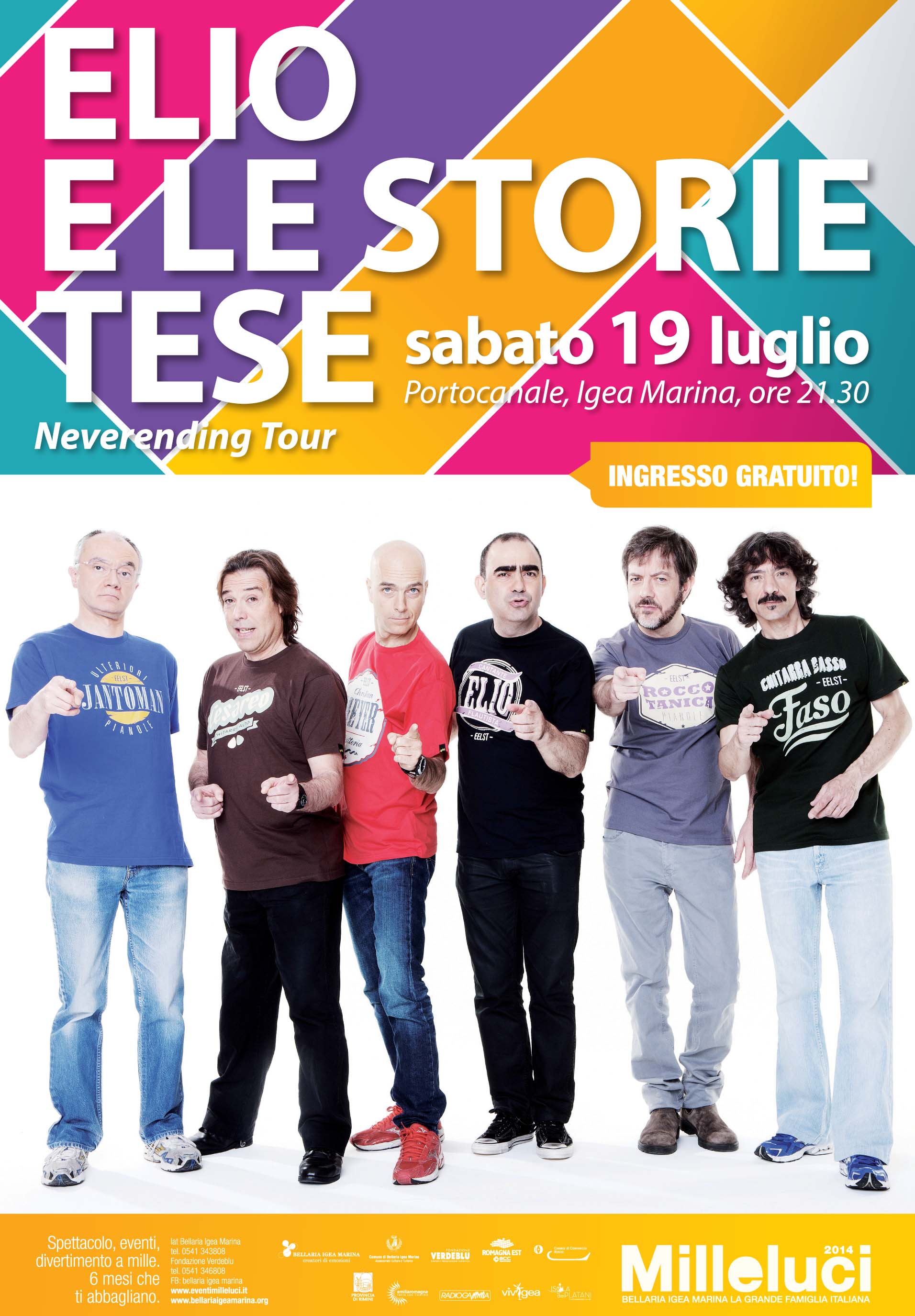 Il 19 luglio 2014 andrà in scena l’evento di punta di tutta la rassegna: il concerto di ELIO E LE STORIE TESE (Portocanale di Bellaria Igea Marina - lato Igea Marina – ore 21.30 – ingresso gratuito).