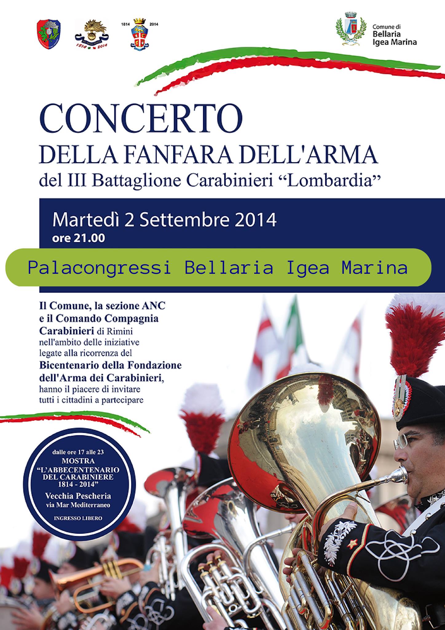 Il Comune di Bellaria Igea Marina, la sezione ANC e il Comando Compagnia Carabinieri di Rimini invitano tutti a partecipare al concerto, organizzato nell'ambito delle iniziative legate alla ricorrenza del Bicentenario della Fondazione dell'Arma dei Carabinieri.