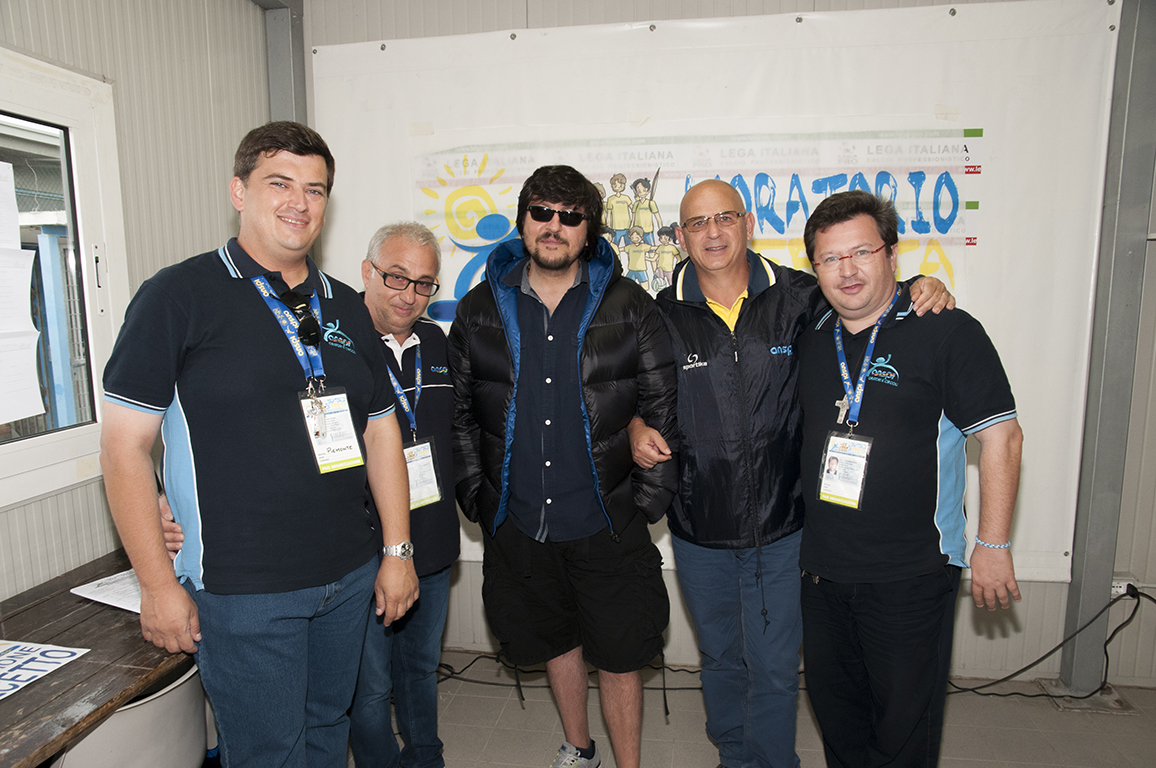 Il protagonista della fiction televisiva ‘Distretto di polizia’ e di tante altre apparizioni sullo schermo segue il figlio Francesco, 8 anni, impegnato nel torneo di calcio mini scarabocchio.