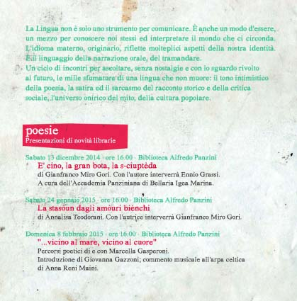 Un ciclo di incontri per ascoltare, senza nostalgie e con lo sguardo rivolto al futuro, le mille sfumature di una lingua che non muore: il tono intimistico della poesia, la satira ed il sarcasmo del racconto storico e della critica sociale, l’universo onirico del mito, della cultura popolare.
