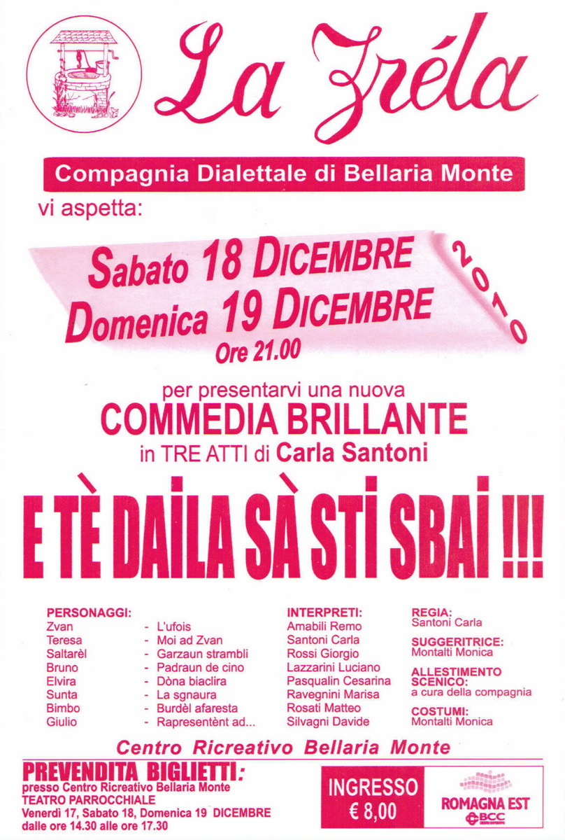 La compagnia dialettale La Zréla presenta la commedia brillante in tre atti "E te daìla sà stì sbaì!!!".