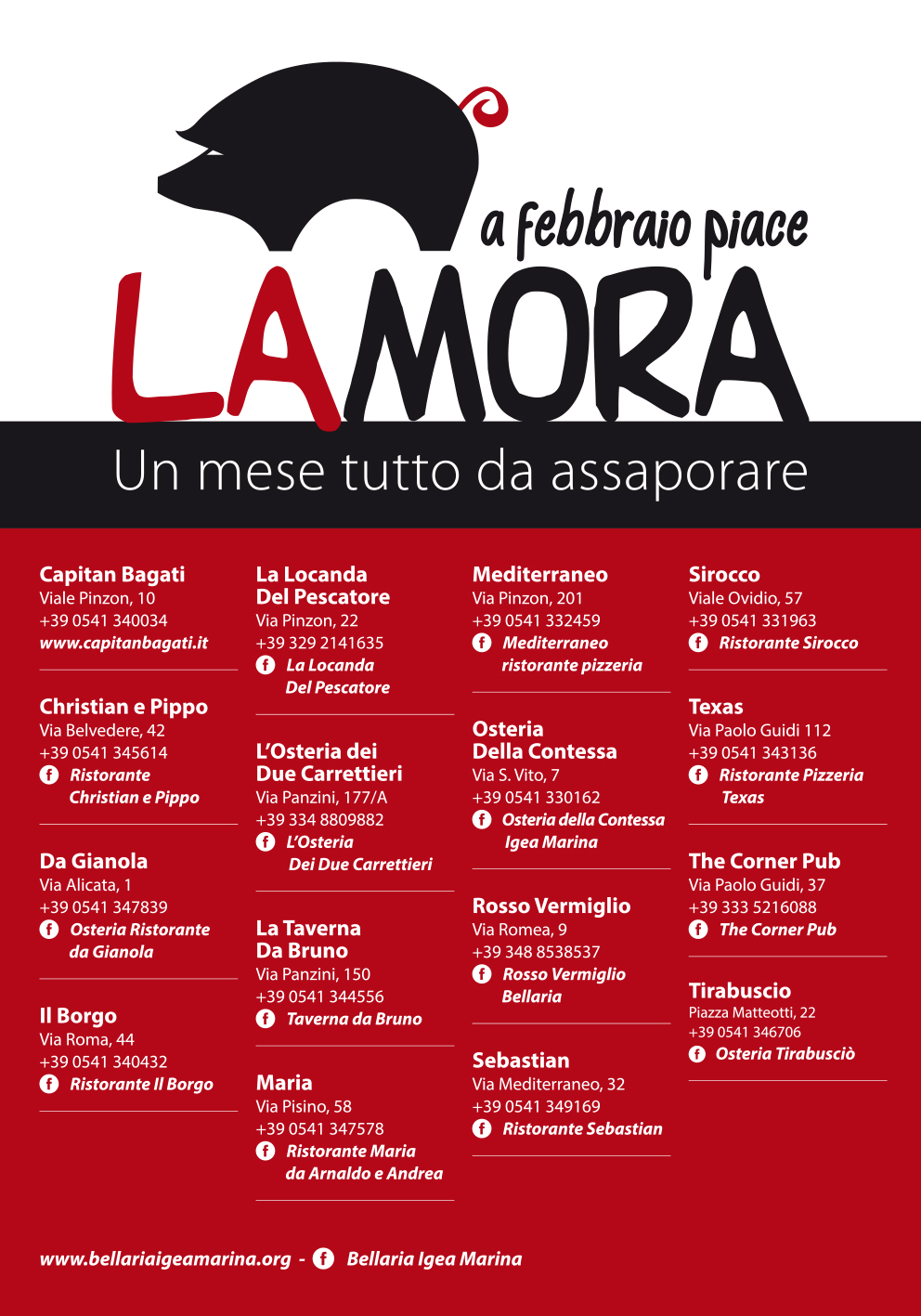 Per tutto il mese di febbraio a Bellaria Igea Marina saranno protagonisti la tradizione e il gusto saporito tipico della “Mora”, il maialino nero caratteristico della Romagna.