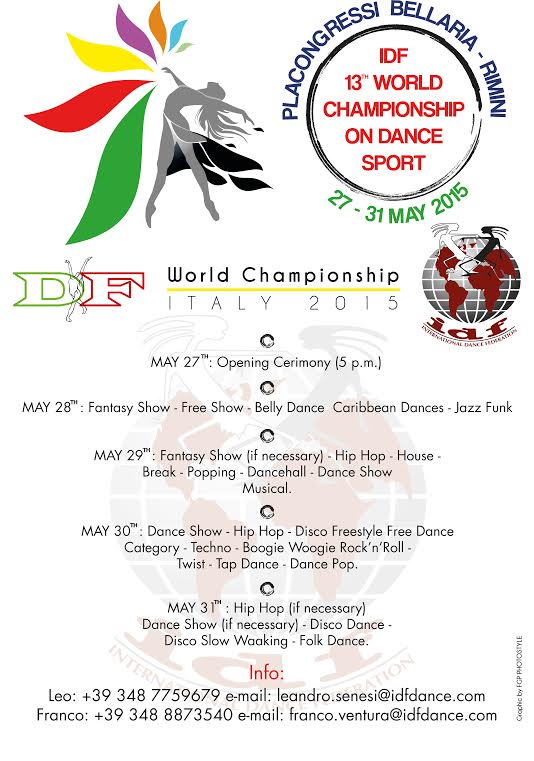 Dal 27 al 31 maggio 2015 appuntamento a Bellaria Igea Marina con il 13th World Championship on Dance Sport IDF.
