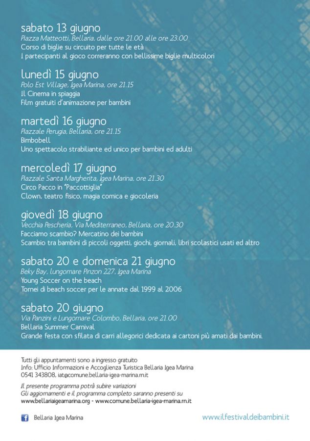 A Bellaria Igea Marina Il Festival dei Bambini propone un calendario ricco di sorprese: giochi, laboratori, spettacoli, teatro e burattini per una settimana di divertimento totale.