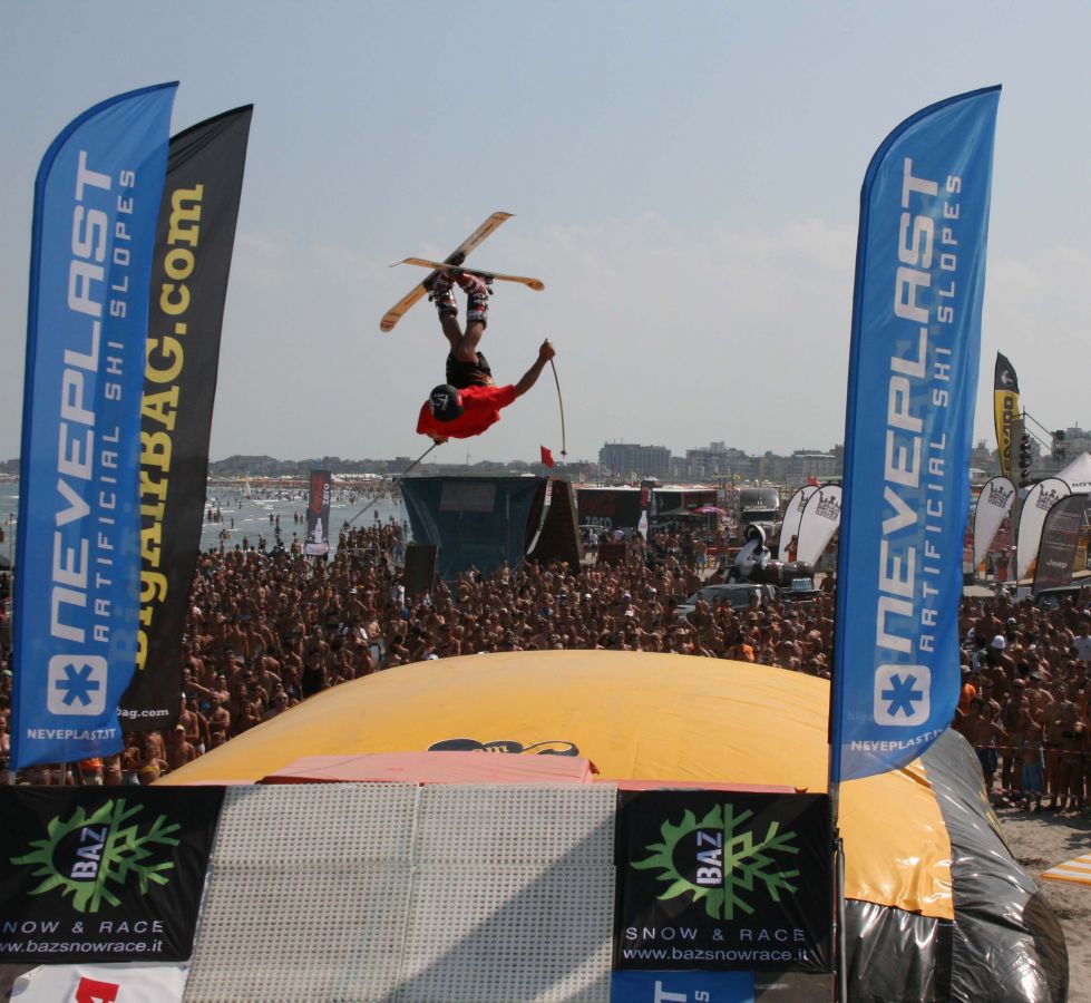Un colpo d’occhio insolito e ricco di fascino: si scierà e si salterà con gli sci e lo snowboard in riva al mare, nel contesto della festa più spettacolare dell’estate.