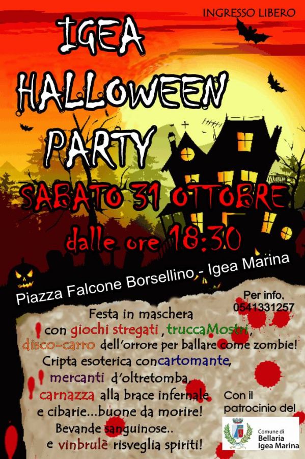 Festa in maschera con giochi stregati, trucca mostri, disco-carro dell'orrore per ballare come zombie, cripta esoterica con cartomante, mercanti d'oltretomba, carnazza alla brace infernale, e cibarie buone da morire! Bevande sanguinose e vin brulè risveglia spiriti.