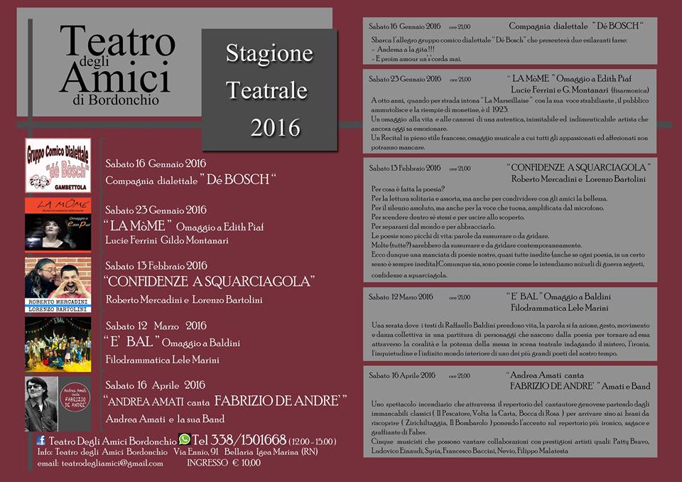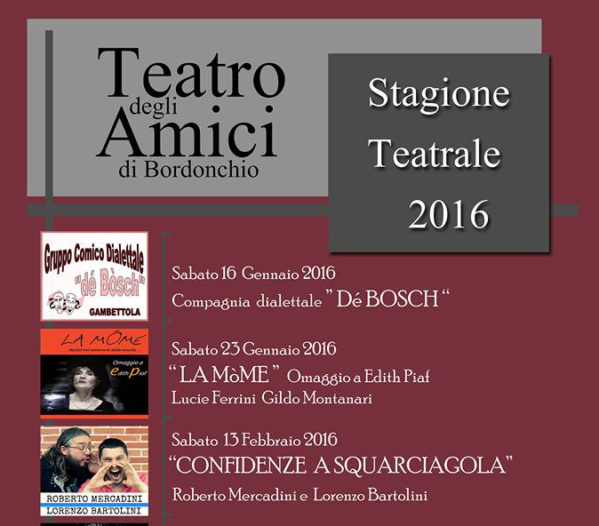 Stagione Teatrale 2016 al Teatro degli Amici di Bordonchio.
