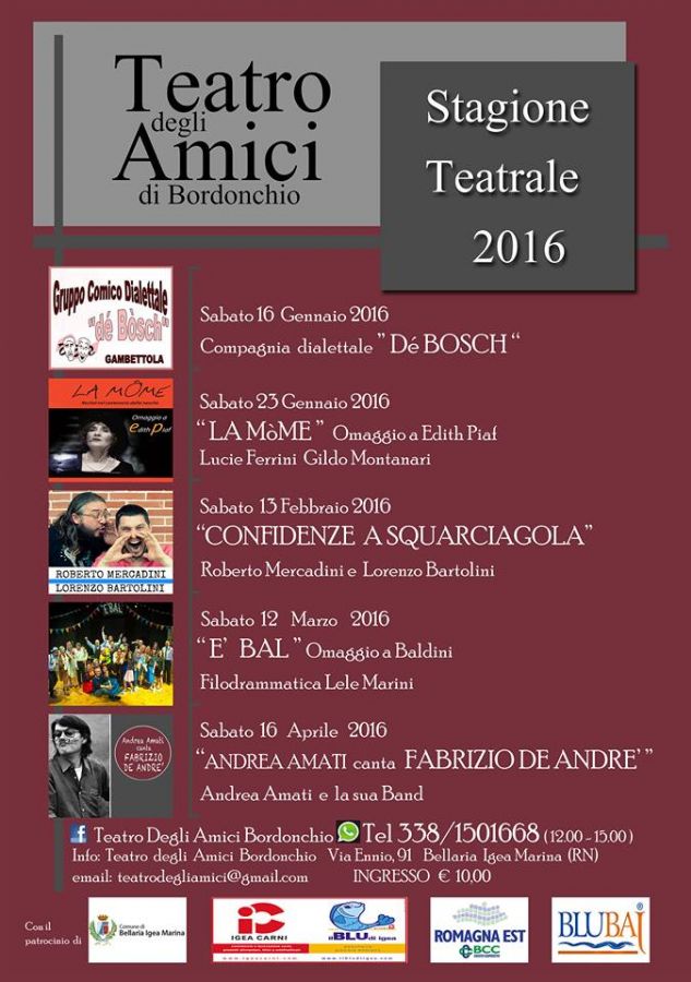 Stagione Teatrale 2016 al Teatro degli Amici di Bordonchio.