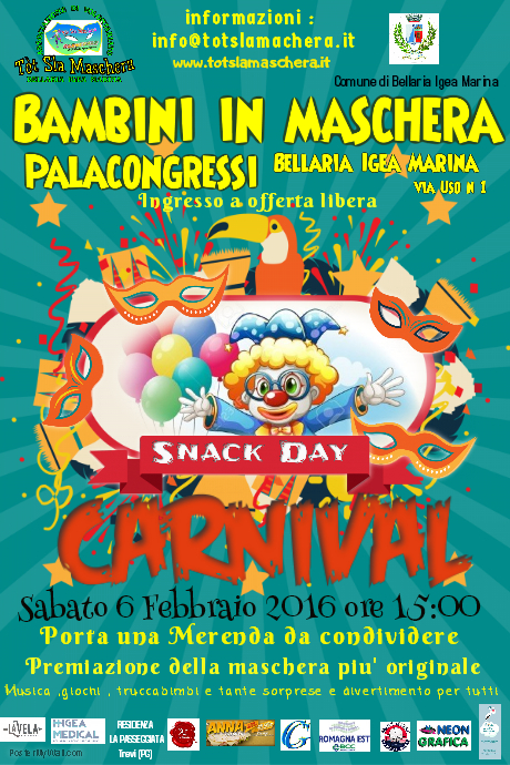 Appuntamento alle ore 15.00 al Palacongressi Bellaria Igea Marina per un pomeriggio di musica, giochi, truccabimbi e tante sorprese per tutti.