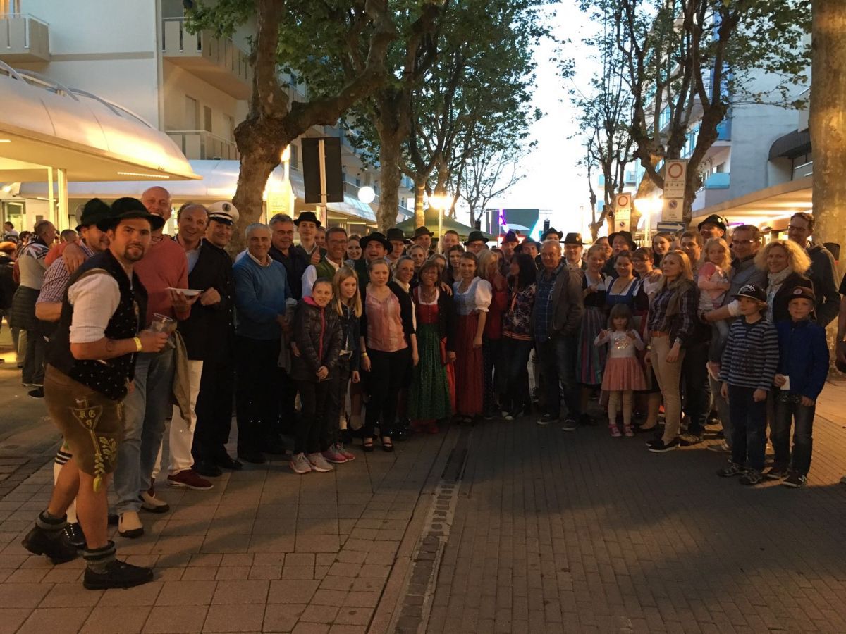 E’ stato un successo l’evento “Wilkommen in Bellaria Igea Marina”, l’anteprima della kermesse “Meine Romagna” che ha animato il cuore di Igea Marina nel tardo pomeriggio e nella serata di ieri. In tanti – in buon numero anche gli ospiti tedeschi – hanno preso parte in viale Ennio all’apericena organizzata con specialità gastronomiche italiane e tedesche, musica anni ’80 e video dj. La serata, alla cui riuscita hanno contribuito anche i tanti giovani presenti a Igea Marina per il 23° Sand Volley targato Kiklos, è stata allietata anche dal gruppo musicale “Die Andern und Ich” e dal gruppo folkloristico “Die Vilstaler Gebensbach”, ospiti di Bellaria Igea Marina proprio in occasione della Festa di Pentecoste promossa da Unione Prodotto Costa e Apt Servizi in collaborazione con i comuni della Riviera.