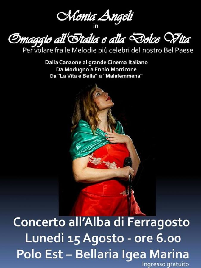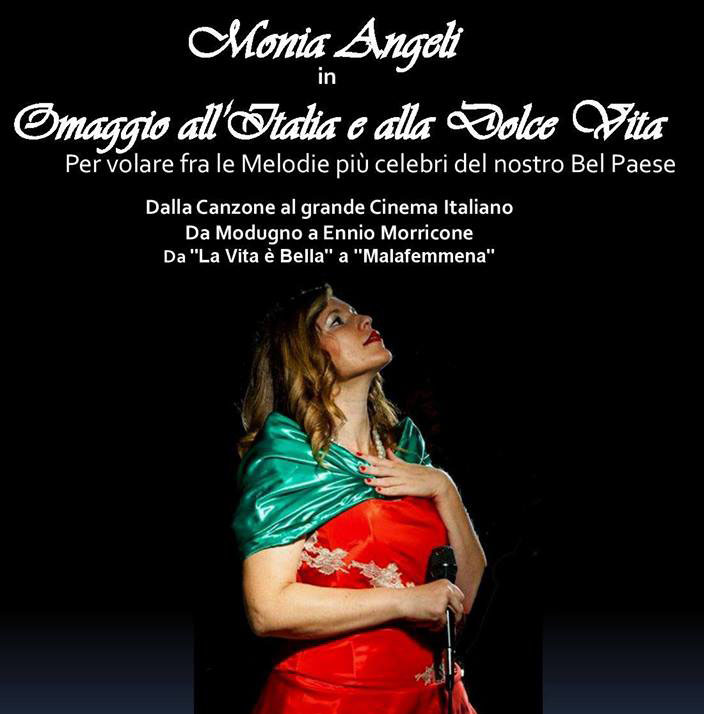 Da Modugno a Ennio Morricone. Da Benigni a Nino Rota. Dal tema de "Il Padrino" a “Malafemmena” e a “Roma non far la stupida stasera”. Dalla canzone italiana al grande cinema. Monia Angeli e la sua band riproporranno quei brani che rappresentano l’Italia nel mondo, lo faranno con rispetto, orgoglio e un pizzico di nostalgia. Fra canzoni e colonne sonore che il mondo ci invidia, sarà un giro musicale per l’Italia che porterà il pubblico ad una consapevolezza della bellezza e dell’arte che sono regine nel nostro paese.