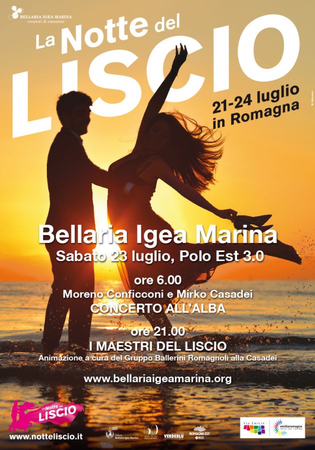 Quasi 60 appuntamenti lungo un intero fine settimana, oltre 30 formazioni tra orchestre tradizionali e band giovanili, più di 300 musicisti e tante scuole di ballo con oltre 500 ballerini da tutta Italia. La Romagna, dalla Riviera all’entroterra, rende omaggio a uno dei suoi elementi più identitari e inconfondibili con La Notte del Liscio, che dal 20 al 24 luglio vedrà protagonisti, sui palchi allestiti nelle spiagge e nelle piazze di oltre venti località (Comacchio, Ravenna, Marina Romea, Lido di Classe, Lido di Savio, Cervia-Milano Marittima, Cesenatico, Gatteo Mare, San Mauro Mare, Bellaria Igea Marina, Rivazzurra, Rimini, Bellariva, Riccione, Misano Adriatico, Cattolica, e ancora Savignano sul Rubicone, Santarcangelo, San Mauro Pascoli, Forlì, Castrocaro Terme, Predappio, Cesena, Mercato Saraceno, Longiano) le più famose orchestre tradizionali assieme agli artisti contemporanei con le loro reinterpretazioni, con uno special guest d’eccezione, il musicista serbo Goran Bregovic.
