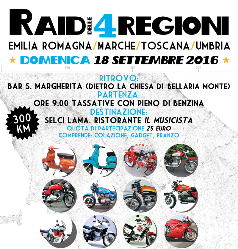 Raid delle 4 Regioni che toccherà Emilia Romagna, Marche, Toscana e Umbria.