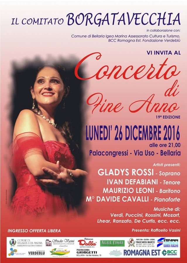 La diciannovesima edizione sarà impreziosita dalla performance del soprano Gladys Rossi, il tenore Ivan Defabiani, il baritono Maurizio Leoni e il Maestro Davide Cavalli al pianoforte. Musiche di Verdi, Puccini, Rossini, Mozart, Lehar, Ranzato, De Curtis.