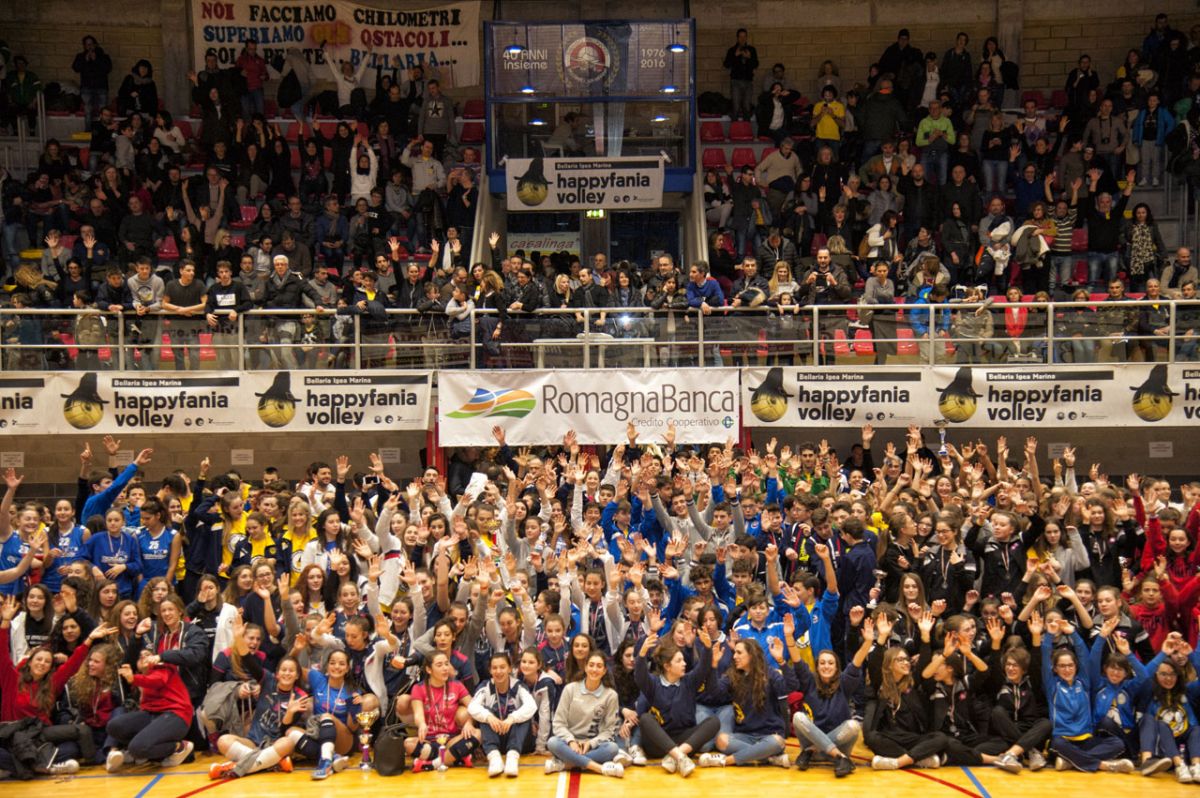 Un via vai di pullman provenienti da tutta Italia ha attraversato Bellaria Igea Marina, Viserba e Rimini per la quinta edizione di Happyfania Volley, il torneo di pallavolo giovanile nazionale organizzato da Dinamo Pallavolo Bellaria e Kiklos, in collaborazione con Fondazione Verdeblu. La tre giorni di volley si è chiusa venerdì pomeriggio nell’affascinante cornice del Palazzetto dello Sport di Bellaria Igea Marina affollato di pubblico, colori e striscioni. Proprio il giorno dell’Epifania si è registrato, infatti, il culmine della manifestazione con le finalissime delle categorie maggiori, la Lotteria della Befana e la cerimonia di premiazione presieduta dall’Assessore allo Sport Gianni Giovanardi, dal Presidente Dinamo Pallavolo Bellaria Igea Marina Riccardo Pozzi e dal socio fondatore di Kiklos Rossano Armellini.