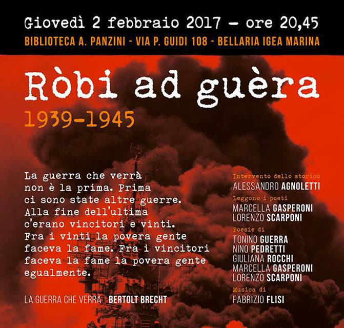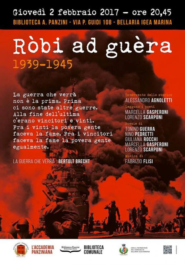 I poeti Marcella Gasperoni e Lorenzo Scarponi leggeranno le loro poesie della guerra e anche quelle di Tonino Guerra, Nino Pedretti, Giuliana Rocchi.
