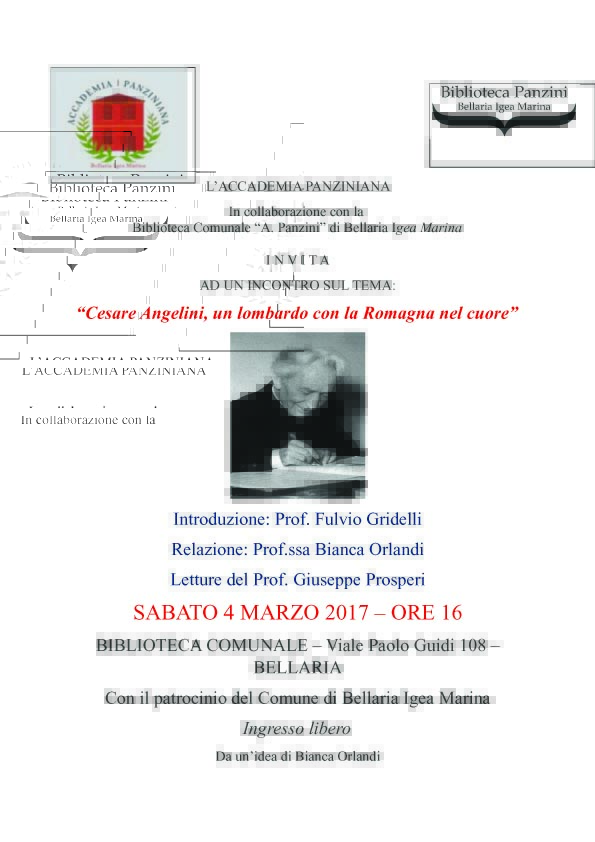 L'Accademia Panziniana in collaborazione con la Biblioteca Comunale "A. Panzini" Bellaria Igea Marina vi invita a partecipare a
