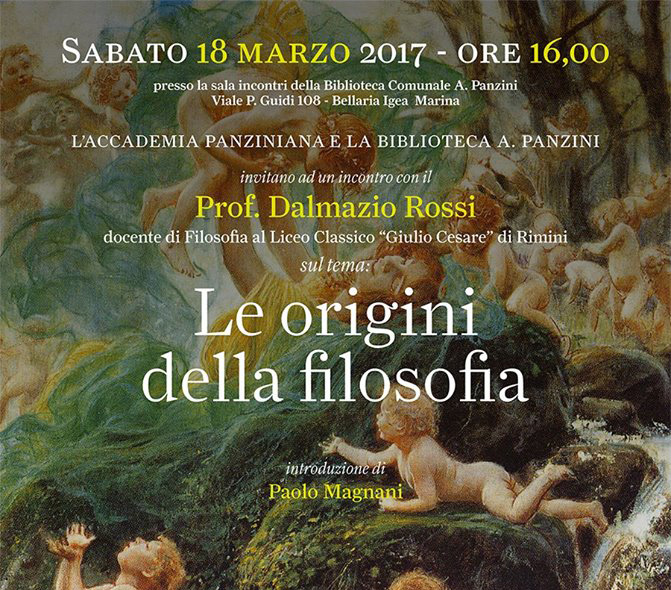 Accademia Panziniana e Biblioteca Comunale "A. Panzini" invitano all'incontro con il Professor Dalmazio Rossi, docente di filosofia presso il Liceo Classico "Giulio Cesare", Rimini.