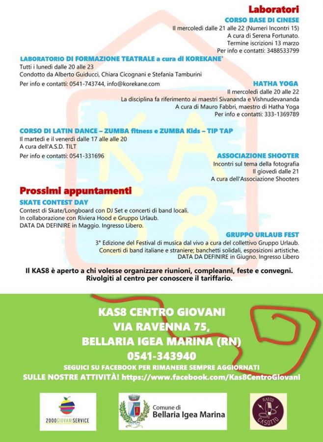 Il KAS8 è aperto a chi volesse organizzare riunioni, compleanni, feste e convegni.