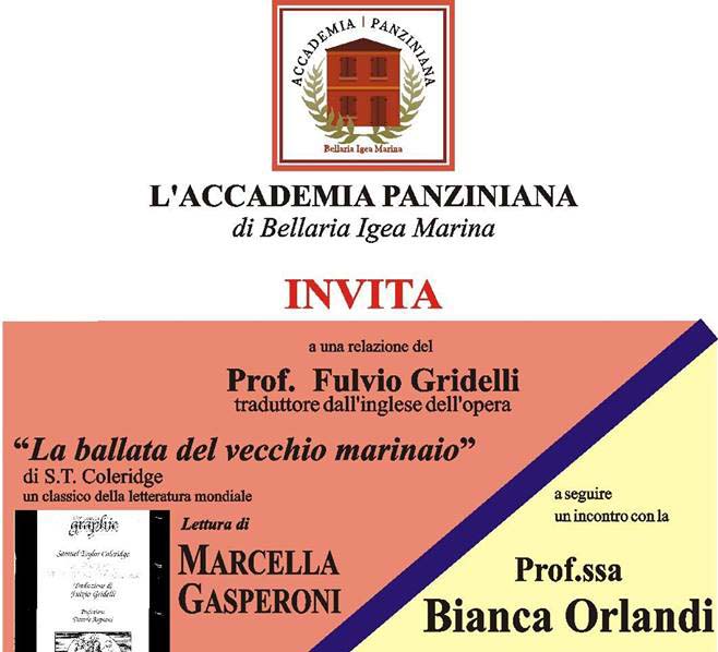 Il Professor Fulvio Gridelli terrà una relazione su uno dei classici della letteratura mondiale "La ballata del vecchio marinaio" di S.T. Coleridge, opera da lui stesso tradotta dall'inglese.