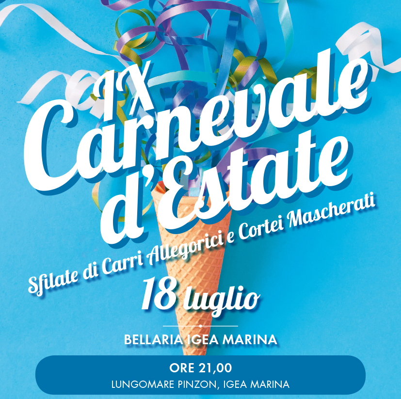 Appuntamento con il Carnevale d'Estate a Igea Marina, con sfilata dei carri mascherati lungo Via Pinzon.