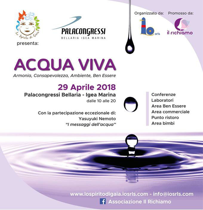 Acqua Viva in programma il 29 aprile 2018 (orario al pubblico ore 10.00 -20.00) nella location del Palacongressi di Bellaria Igea Marina, vuole sensibilizzare, informare e promuovere buone pratiche su tutto ciò che è legato all’acqua poichè l’acqua è vita.