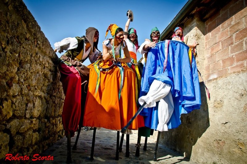 Un turbinio di colori, musica e suoni invaderà la festa e nessuno potrà sottrarsi al gioco dei “lunghi” giullari che riempiranno di gioia le strade e piazze. La “Paratrampolata in Do” è uno spettacolo itinerante interpretata da colorati personaggi invadenti che lasceranno a bocca aperta chiunque incontrino.