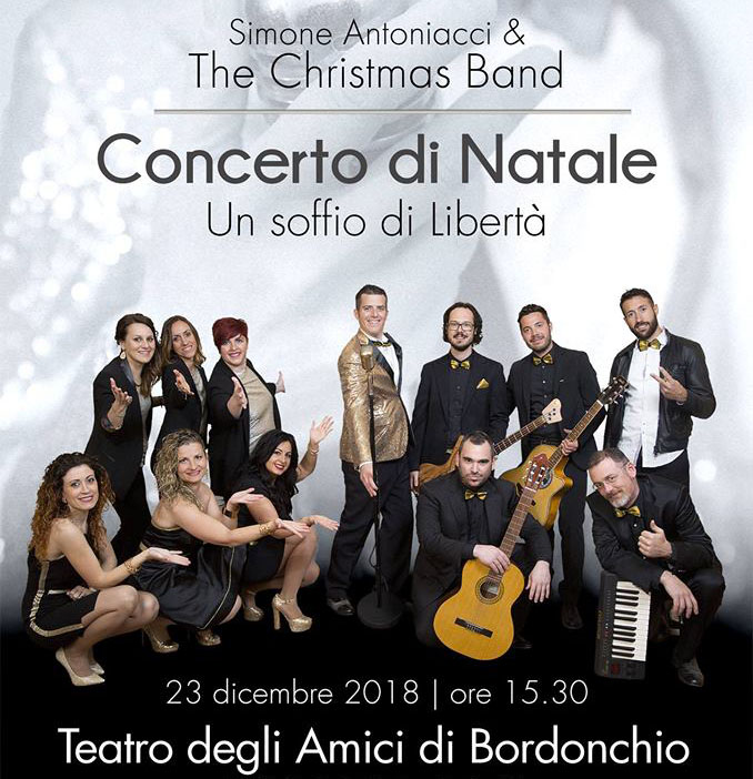 Approda per la prima volta a Bellaria Igea Marina presso il Teatro degli Amici di Bordonchio la XII°edizione del tradizionale Concerto di Natale di Simone Antoniacci & The Christmas Band, con il 2° appuntamento del tour 2018/2019 intitolato "Un soffio di Libertà".