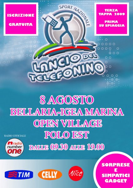 La tappa di Bellaria Igea Marina è in programma per tutta la giornata dell’ 8 Agosto 2009 presso la spiaggia libera del Polo Est: la partecipazione è gratuita e non è richiesta nessuna iscrizione anticipata, nel giorno della manifestazione chi vorrà tentare il lancio dovrà soltanto compilare una cartolina con i propri dati ed aspettare il proprio turno.